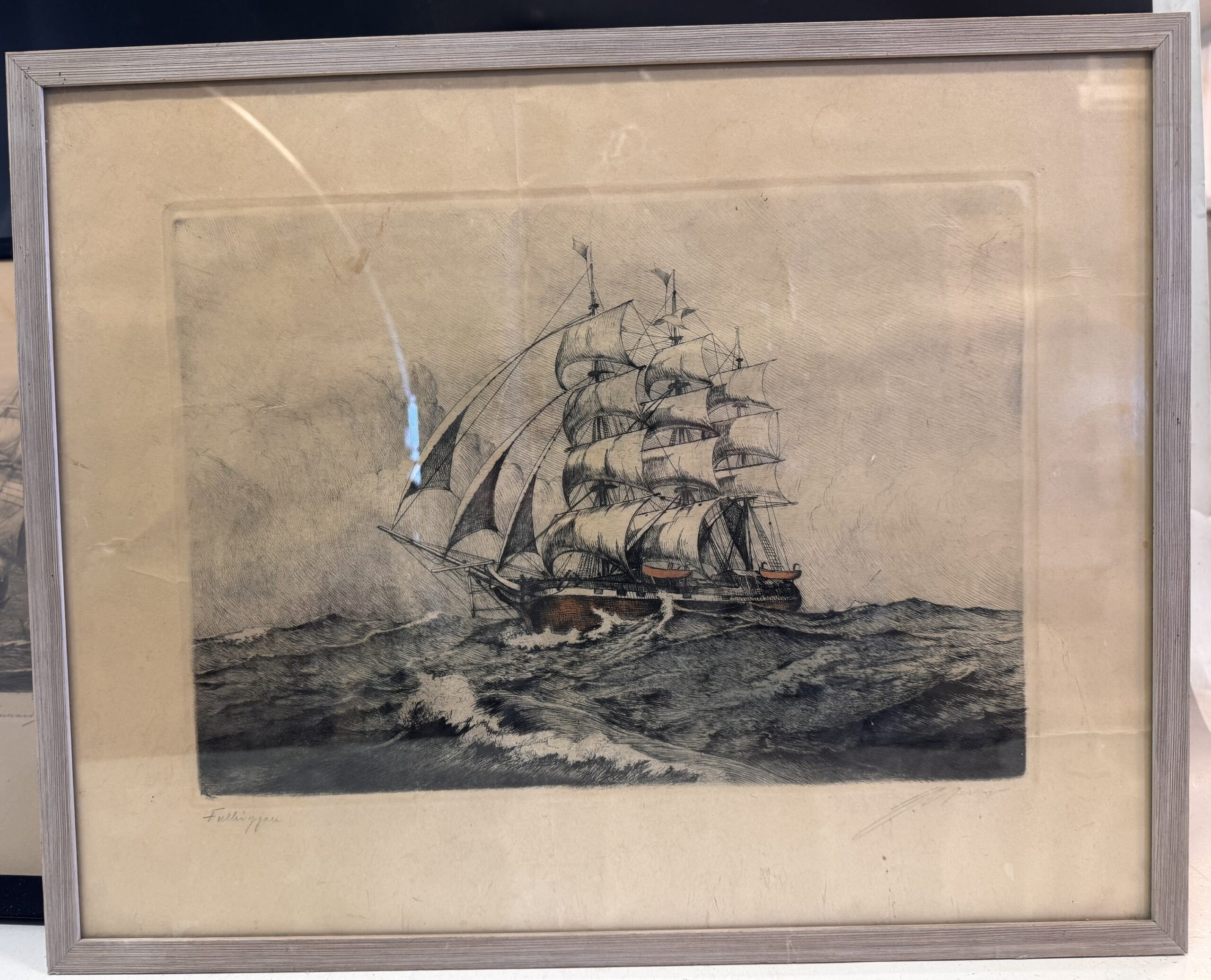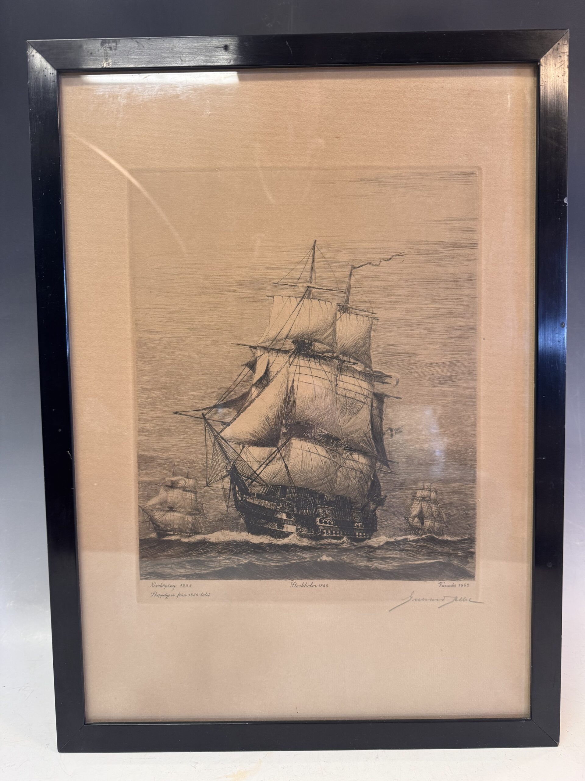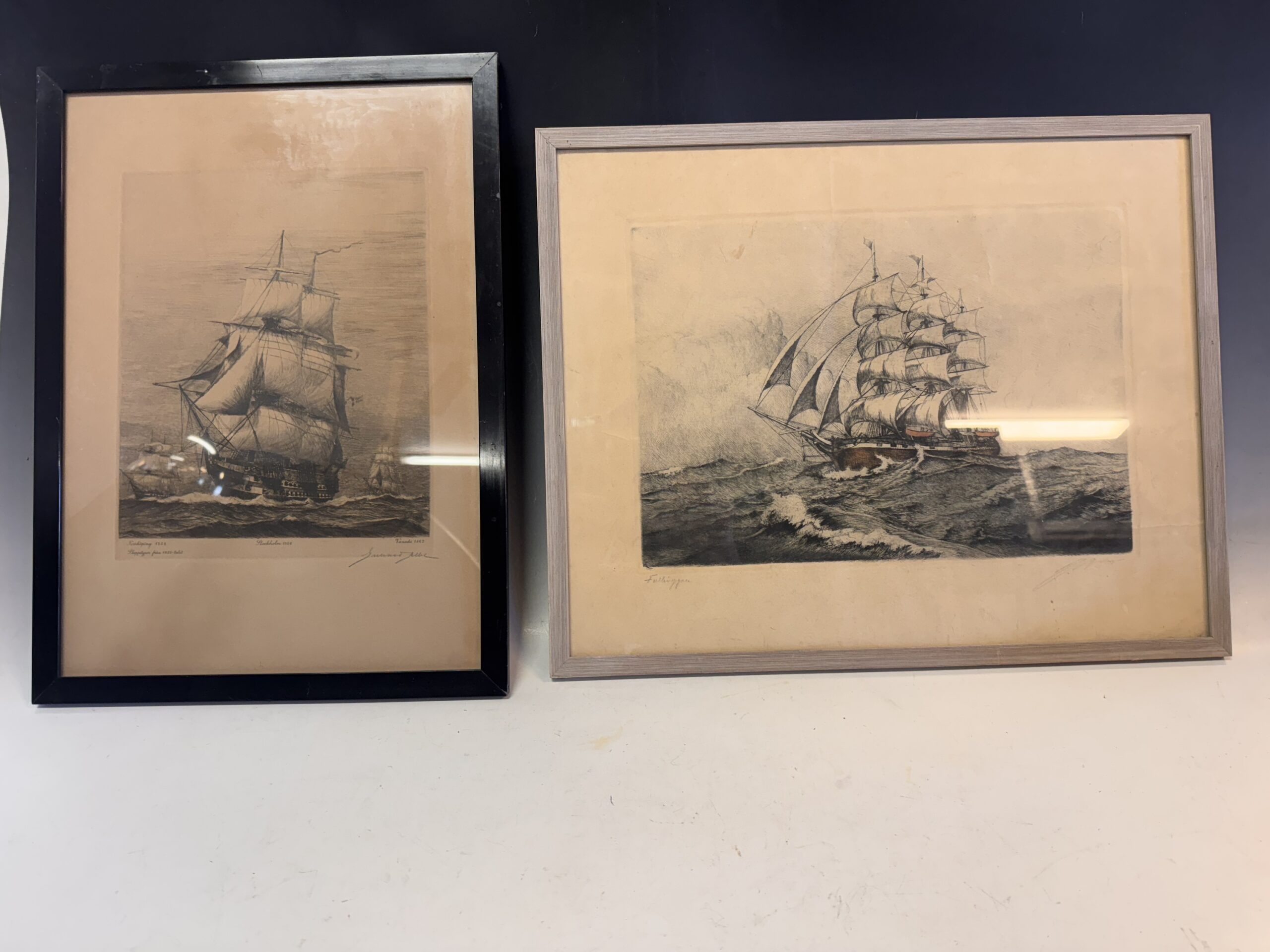 Auktionsobjekt: Äldre tavlor med skeppsmotiv. Tryck